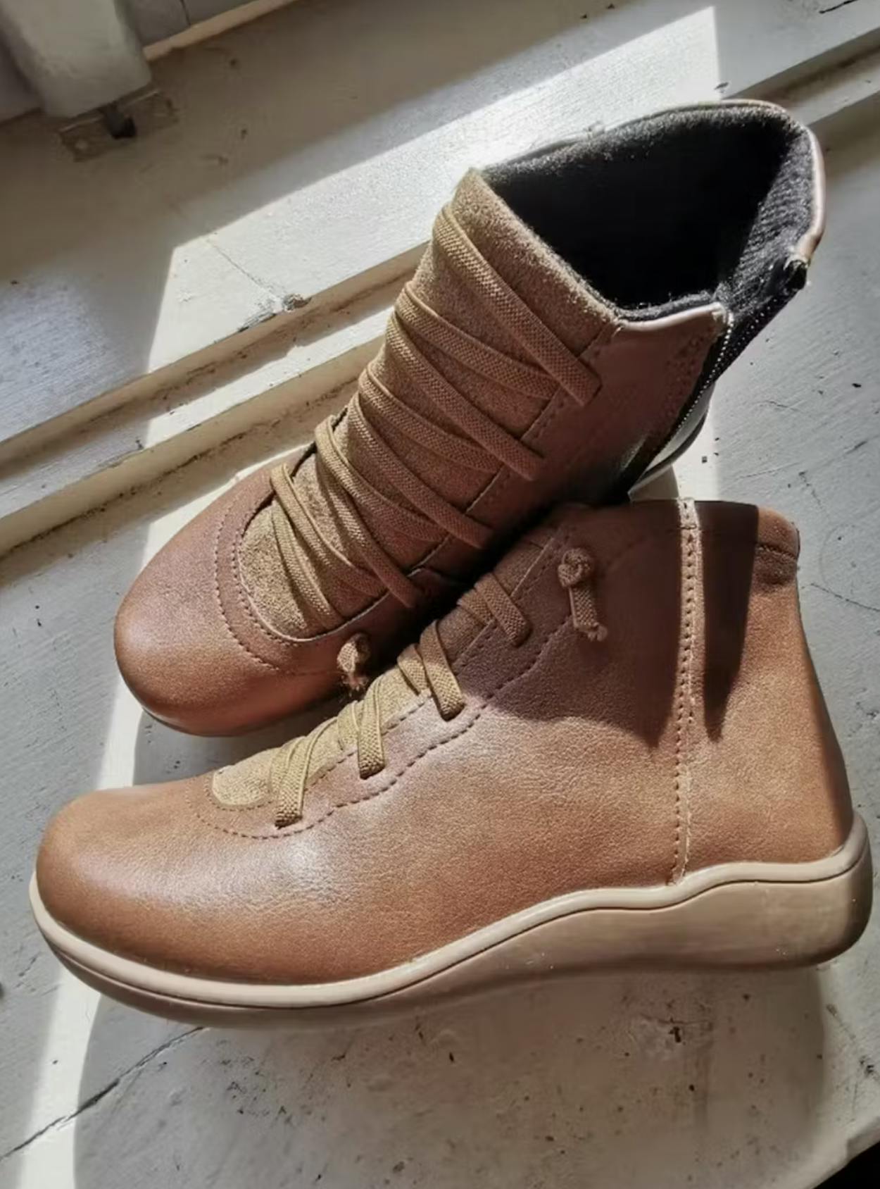 Os sapatos ortopédicos Brittany melhoram a sua postura, reduzem a dor nos pés e são feitos à mão com materiais reciclados de alta qualidade, respeitadores do ambiente.
