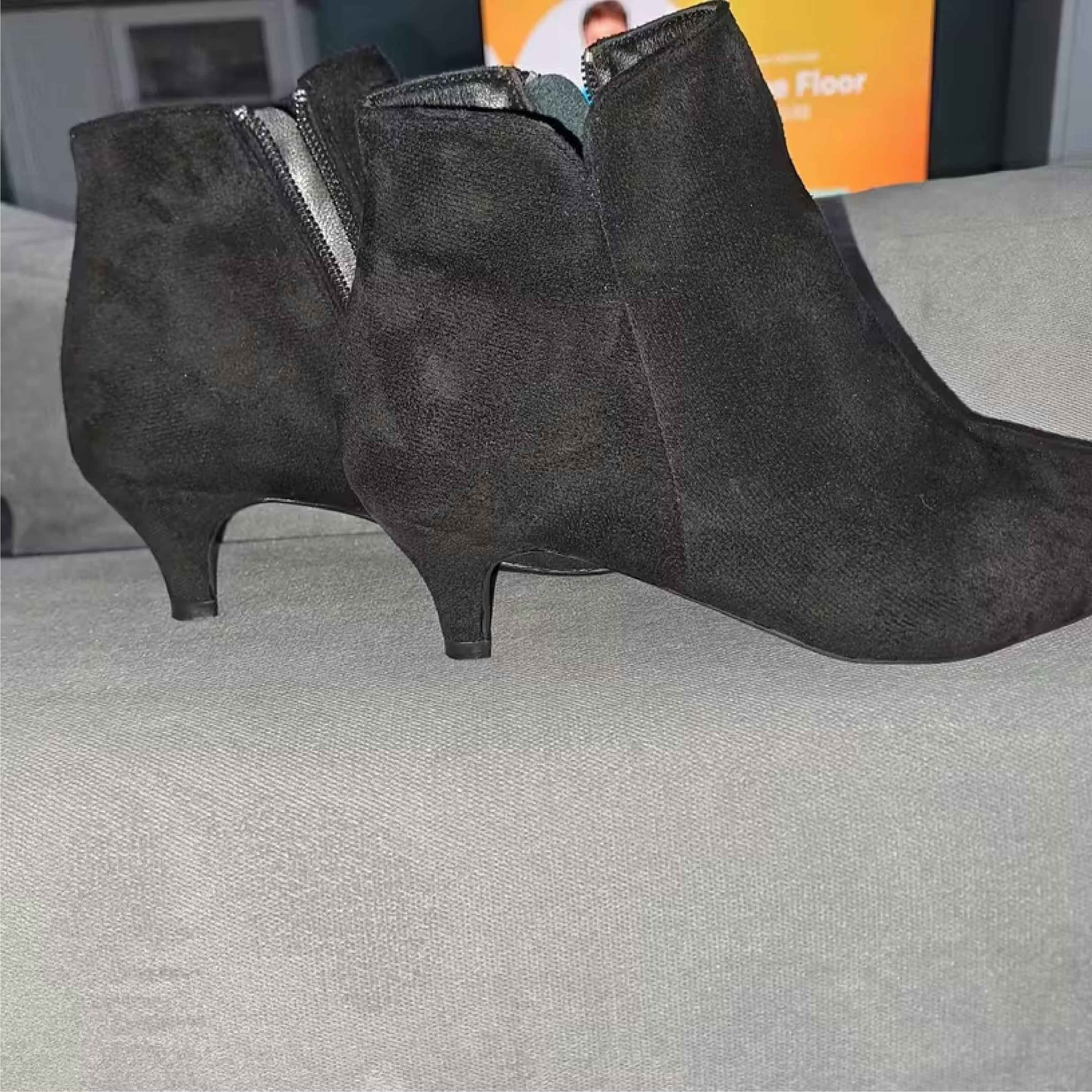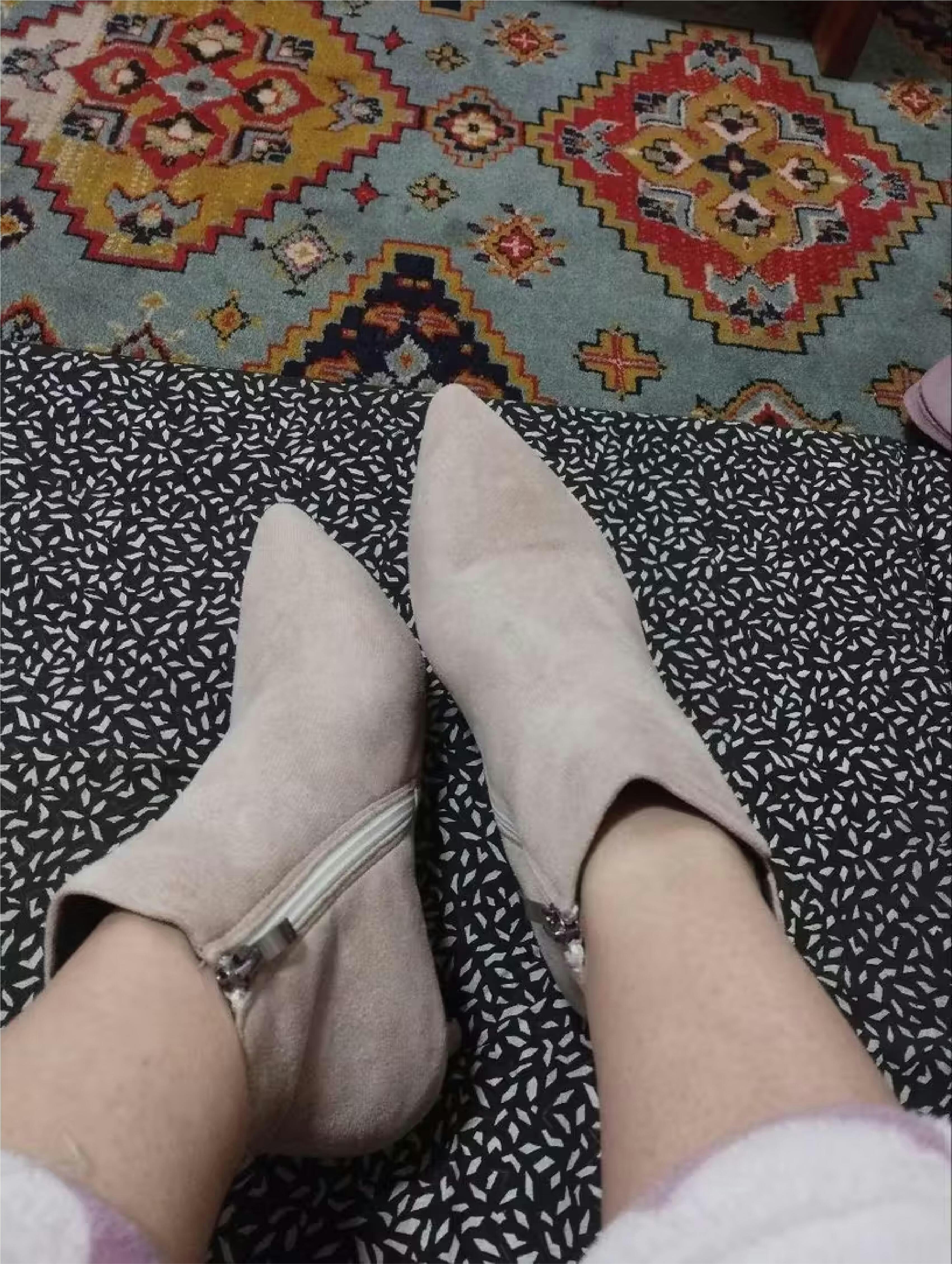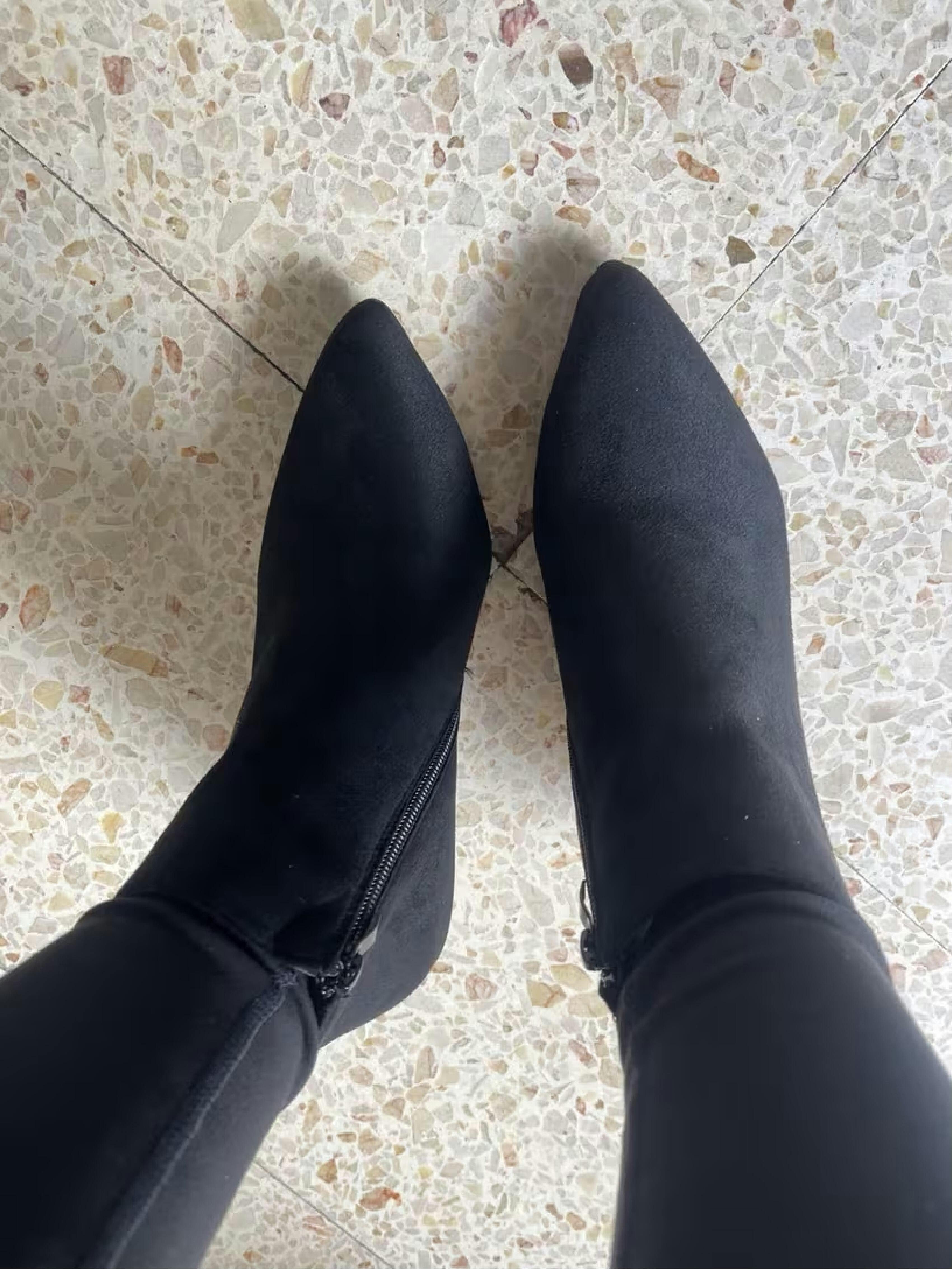 A biqueira pontiaguda é surpreendentemente confortável graças ao tecido flexível. São elegantes, aquecem bem e o fecho é prático.