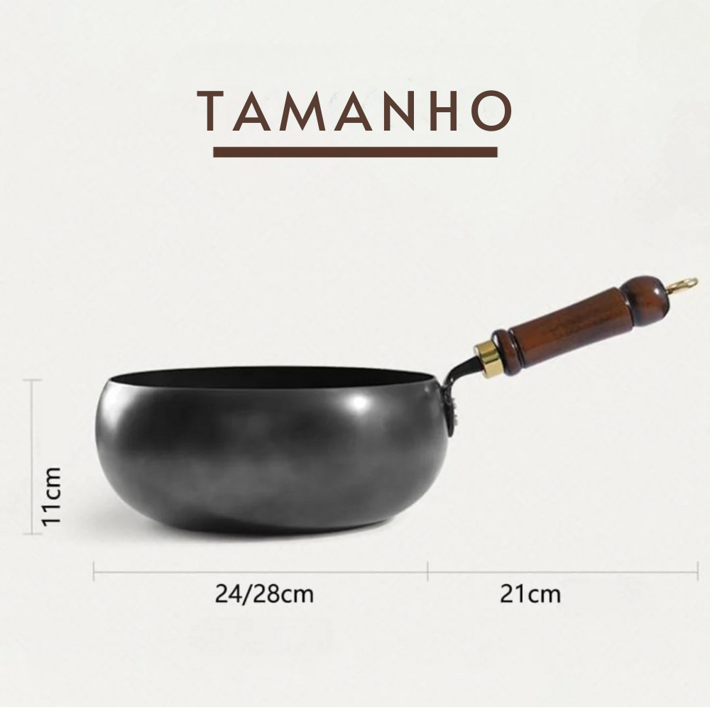 ✅ Ferro forjado: retém e distribui o calor como um forno a lenha, garantindo pratos sempre no ponto.